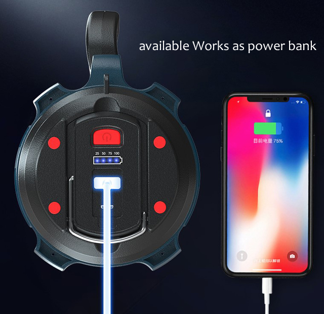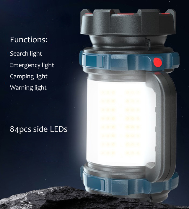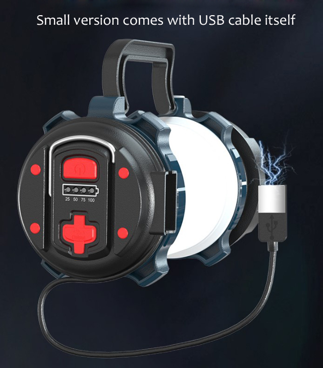 Brief : 1). LED: L2LED+60LED for small size, and P50LED+84LED for big size. 2). Charging method: Rechargeable. 3). Battery: 2400mAh for small size, 4800mAh for big size. 4). Multi function: Camping Lantern, LED Torch, Warning Red Light, Power Bank.