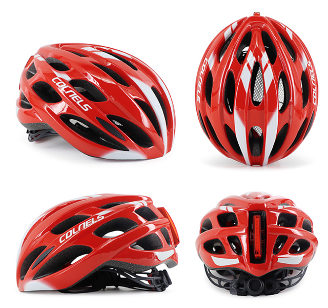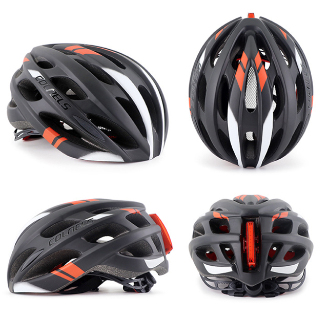1). Material: PC + EPS 2). Size: L (weight 235g, 18*23*15cm). 3). Bright Tail warning LED, 6 modes. 4). Vents: 25pcs 5). For head circumference: 58-62cm 6). head circumference adjustable: YES 7). Colors: Black with white/ White with orange / Black with white / Blue with black / Yellow with black.