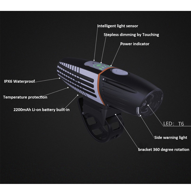 WD-UT600 USB rechargeable Bike Light 600LM with Stepless Dimming control