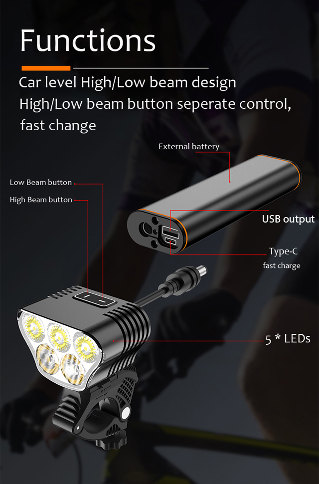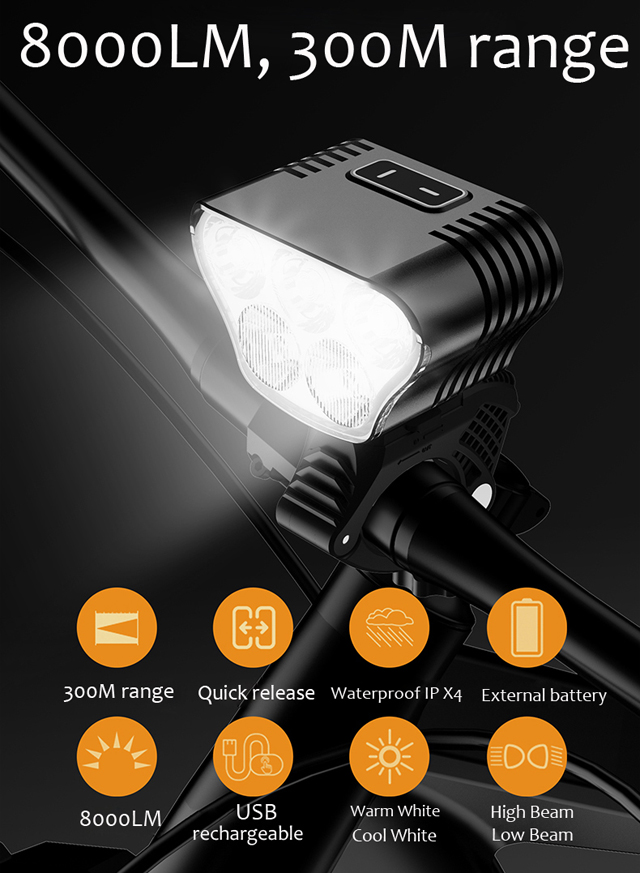 New Lanuch M5 8000Lumen Bike Light with External 20000mAh Battery