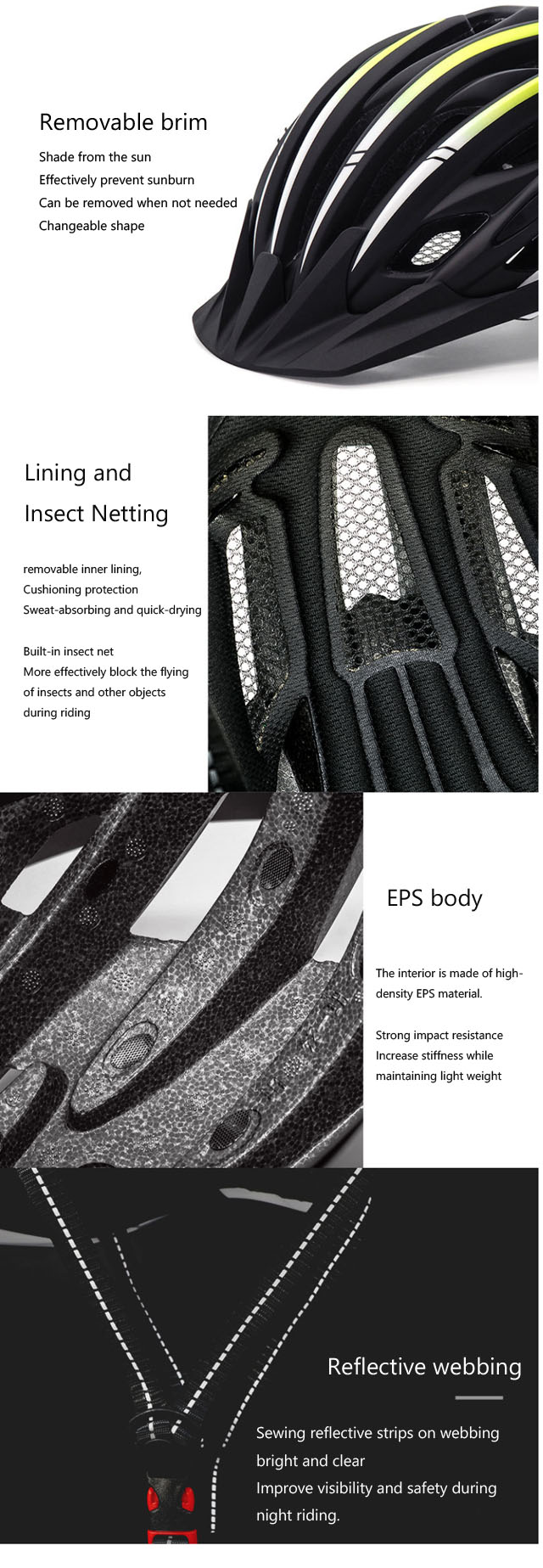 Removable Brim Mountain Bike Riding Helmet with Tail Warning Light